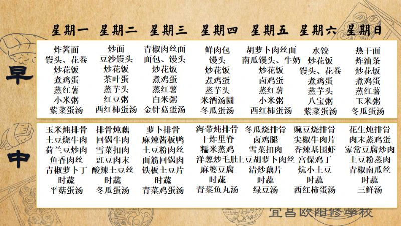 宜昌歐陽修學校每周食譜(11月3日-11月9日)