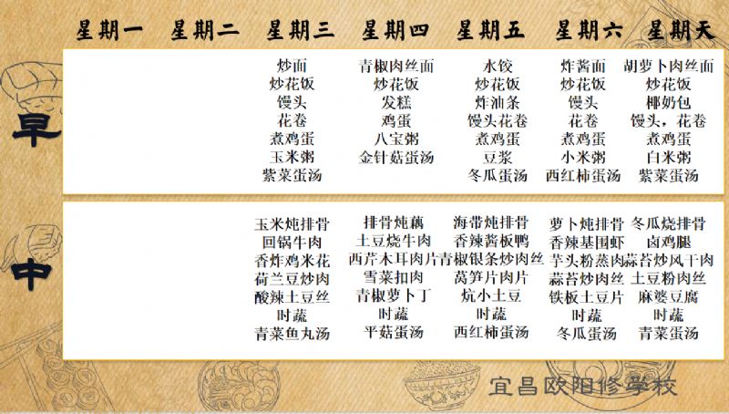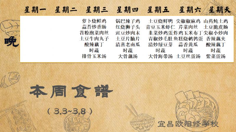 宜昌歐陽修學(xué)校每周食譜(3月3日-3月8日)