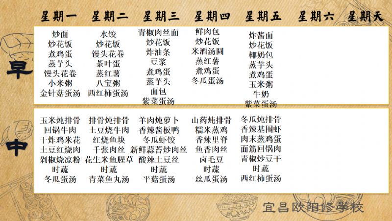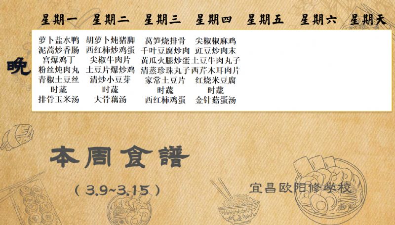 宜昌歐陽修學(xué)校每周食譜(3月9日-3月15日)