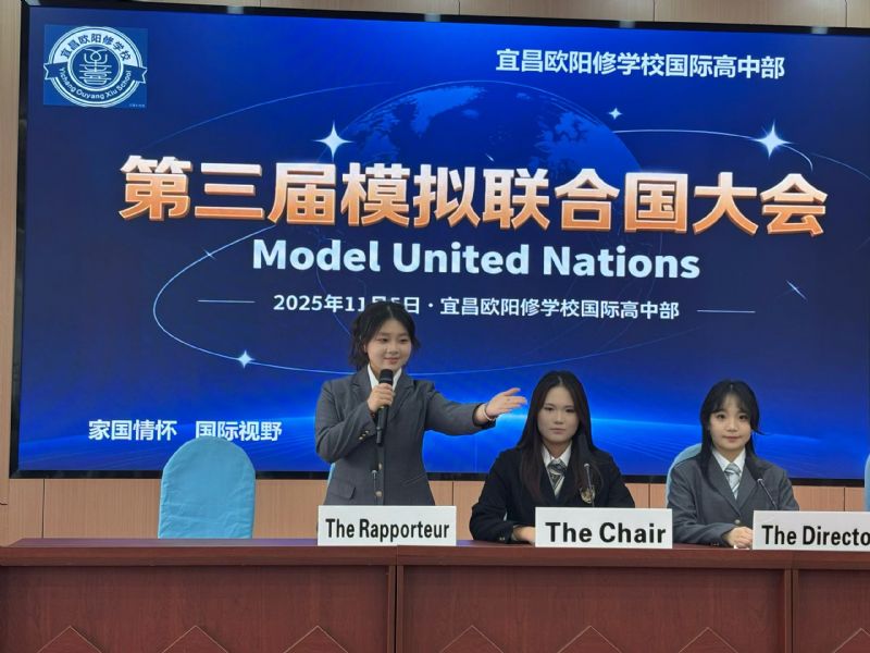 宜昌歐陽修學(xué)校國際高中部第三屆MUN模擬聯(lián)合國大會(huì)于2025年11月5日晚在教學(xué)樓五樓大會(huì)議室隆重舉行,國際高中部OSSD中加班的11位模聯(lián)主席團(tuán)成員以及來自高一年級(jí)的24位優(yōu)秀代表扮演各個(gè)國家的外交官,全英文闡述有關(guān)UAV無人機(jī)的管控意見,給全校師生展示了英語學(xué)習(xí)的趣味性和現(xiàn)實(shí)意義?! ?br /> 眾所周知,高效課堂學(xué)習(xí)方式的核心和靈魂就是體驗(yàn)和運(yùn)用。MUN模擬聯(lián)合國是一種難度適中的外交角色扮演活動(dòng),目的在于訓(xùn)練學(xué)生像聯(lián)合國官員一樣寫作、像新聞發(fā)言人一樣演講、像外交官一樣溝通磋商談判,是一種卓有成效的領(lǐng)導(dǎo)力教育形式,是無聲的立志教育。