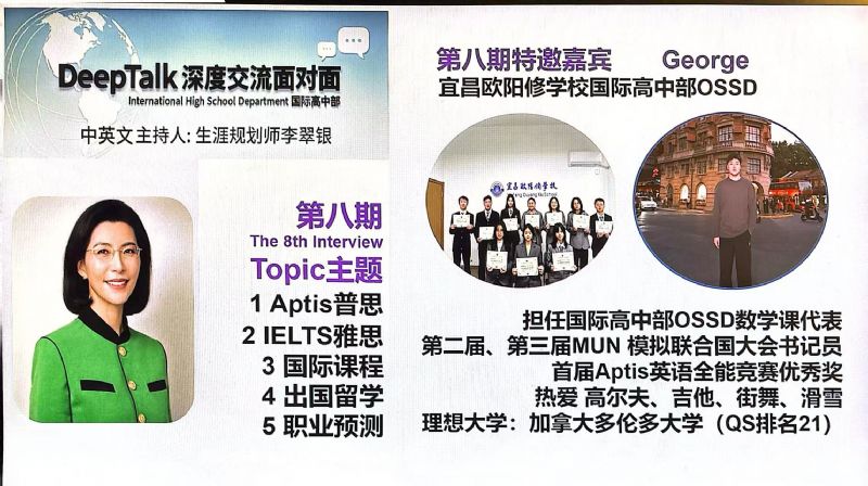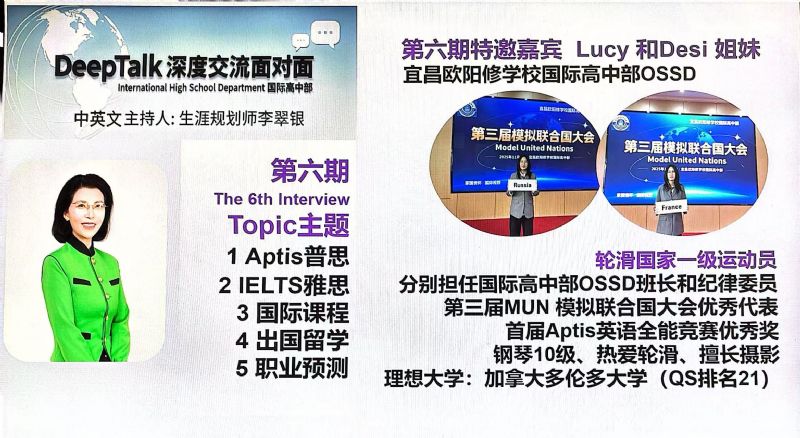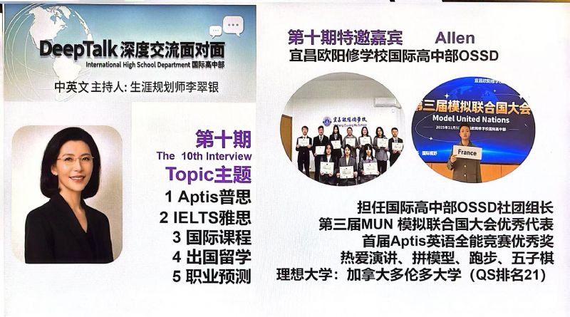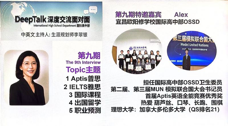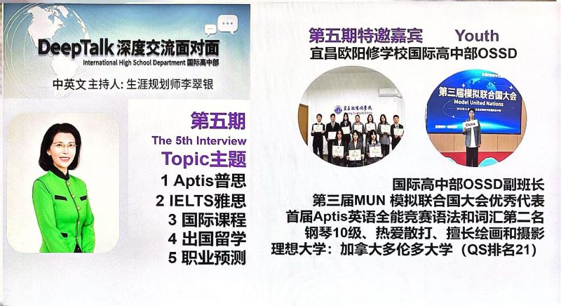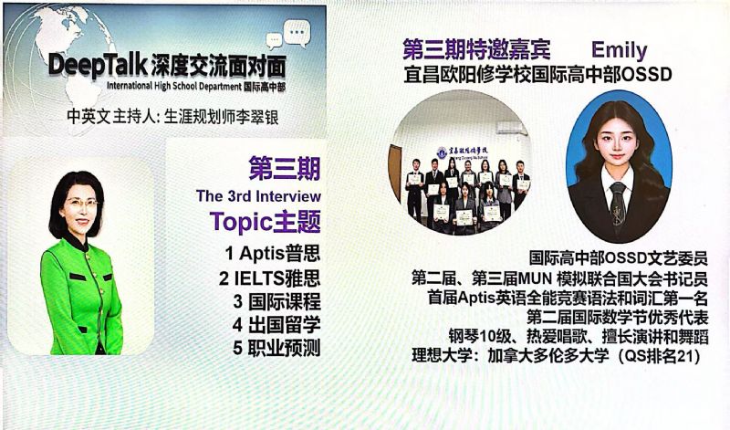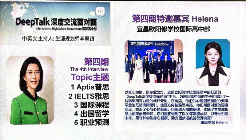 為什么要搭建DeepTalk這個平臺? 因?yàn)閲H高中部的學(xué)生面臨著國際標(biāo)化考試、出國留學(xué)、文化融入以及自我認(rèn)知的多重挑戰(zhàn),為了切中家長和學(xué)生的剛需,確保學(xué)生身心健康地成長,宜昌歐陽修學(xué)校國際高中部,經(jīng)過總結(jié)多年的教育教學(xué)經(jīng)驗(yàn),決定于2023年9月正式為學(xué)生搭建一個集心理支持、學(xué)業(yè)規(guī)劃和生涯指導(dǎo)于一體的平臺:DeepTalk深度交流面對面。