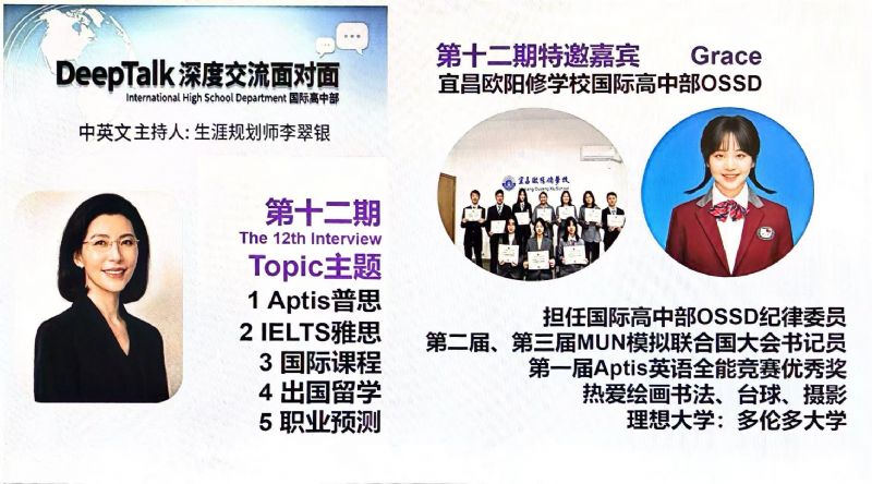 DeepTalk深度交流面對面,不止于升學(xué),更關(guān)乎成長,它是給國際高中部學(xué)生提供心理賦能與出國留學(xué)學(xué)業(yè)及生涯規(guī)劃的先行者,是一個集心理支持、學(xué)業(yè)規(guī)劃和生涯指導(dǎo)于一體的平臺。