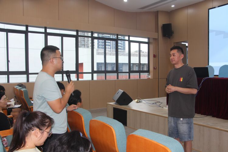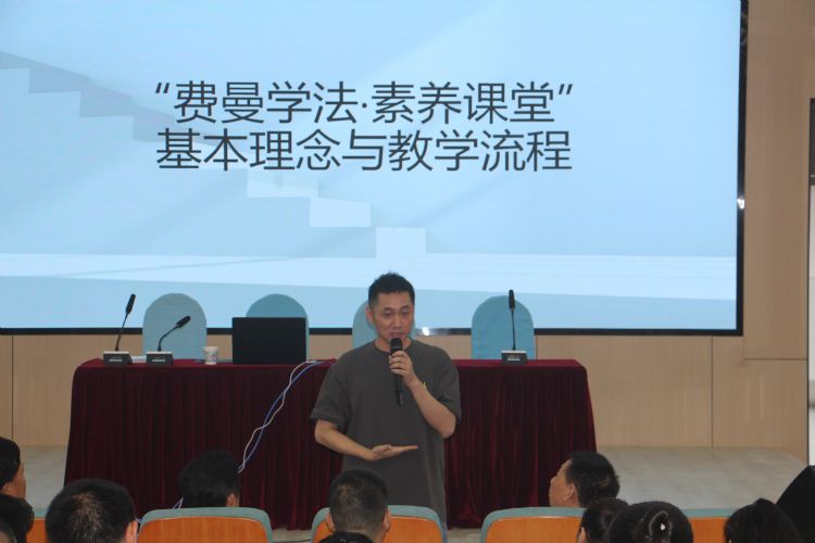 費(fèi)曼學(xué)法,要“突出學(xué)生的主體地位”,“以學(xué)定教”,陳老師沒(méi)有干巴巴地輸出理論,而是以兩節(jié)公開(kāi)課為例,具體明確地向大家展示了教學(xué)流程。我校老師們化身學(xué)生,隨著陳老師進(jìn)入物理的世界,分組學(xué)習(xí),自主預(yù)習(xí),組內(nèi)討論,并派代表上臺(tái)展示成果,接受其他小組的質(zhì)疑。陳老師精彩的點(diǎn)評(píng)幽默風(fēng)趣,極富個(gè)人魅力,在他的帶領(lǐng)下,老師們積極發(fā)言,完全融入到自己扮演的角色中,氛圍輕松,笑語(yǔ)不斷。