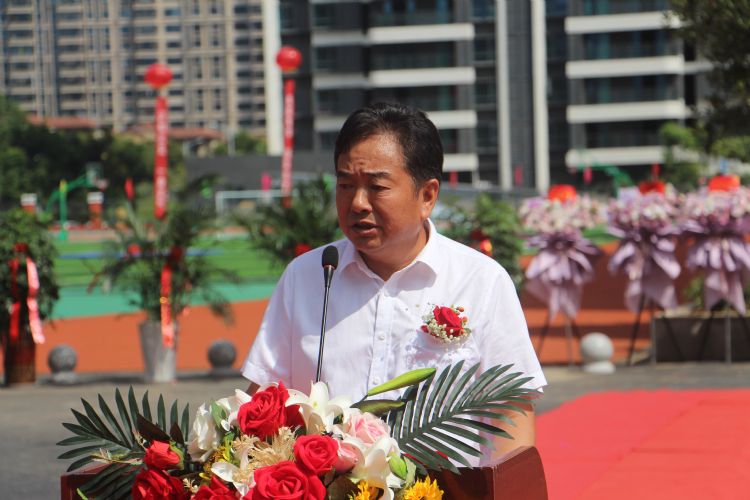 隨后,宜昌天門商會(huì)監(jiān)事長(zhǎng)葛隆恩先生在慶典上致賀詞。他說(shuō):“教育事業(yè)是光彩的事業(yè),投資教育事業(yè)是做善事,行善舉。不忘初心,方得始終。一座學(xué)校的興盛,得益于先進(jìn)的辦學(xué)理念、優(yōu)秀的師資力量和有力的物質(zhì)保障。歐陽(yáng)修學(xué)校自辦學(xué)以來(lái),一步一個(gè)腳印,向外輸送了大量?jī)?yōu)秀生源,已經(jīng)積累起良好的社會(huì)聲譽(yù),如今迭代升級(jí),喬遷點(diǎn)軍,我們完全有理由相信歐陽(yáng)修學(xué)校的明天會(huì)更好?!?br /> 菁菁校園里,喜慶的彩虹門、飄揚(yáng)的彩旗、繽紛的花籃,以及眾人的笑臉,也顯得格外耀眼。
