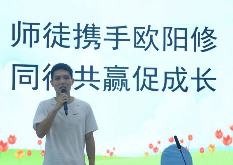 徐煒老師代表新教師向校領導和師傅們保證,她會尊重并熱愛自己的事業(yè),盡快適應崗位需要,不斷提升教學能力,堅定信念,絕不輕言放棄,“因為我有信心,歐陽修學校有這么多優(yōu)秀老師給我們做榜樣,以他們深厚的涵養(yǎng),豐富的學識,精湛的教藝,定會給我們更加厚實的滋養(yǎng)?!?br /> 萬詩榮老師代表老教師鄭重承諾,他們將成為年輕老師們未來發(fā)展道路上的良師益友,幫助青年教師實現(xiàn)個人成長,他說:“我們?nèi)w師傅愿與在座的徒弟們鉆研教材,研究學情,落實‘先學后教’、‘以學生為主體’、‘以學生為中心’的理念,踐行‘至善至喜’的我校校訓。希望你們:做一個眼中有光、心中有愛、手中有尺、心態(tài)陽光的好教師。希望你們:抱著對教育的堅守,不抱怨、不后悔、不迷茫、不倦怠。希望你們:虛心向身邊的老師學習,精心備好每一節(jié)課,用心聽好每一節(jié)課,耐心講評好每一份試卷,在教學中不斷總結反思,提高自己的專業(yè)技能,成就學生也成全自己。”