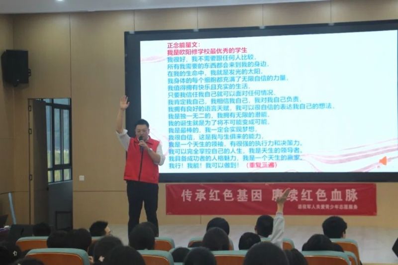 活動接近尾聲,方雷老師帶領(lǐng)全體同學齊聲誦讀能量文:“我相信!我能行!我可以!”響亮的誓言在音樂的伴奏下猶如戰(zhàn)鼓之聲,激勵學生們勇敢追求自己的夢想。
