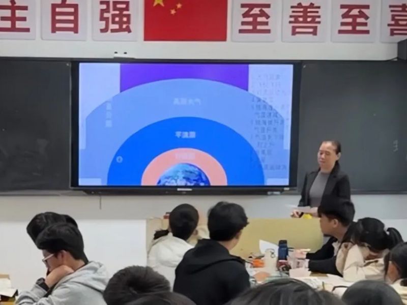 胡惠老師帶領(lǐng)大家走進(jìn)了有趣的地理世界,為我們呈現(xiàn)了“大氣垂直分層”的奧秘。她猶如綿綿絲雨,潤物無聲,使得復(fù)雜的地理知識變得簡單易懂,讓同學(xué)們對大氣分層有了更加細(xì)致的了解。