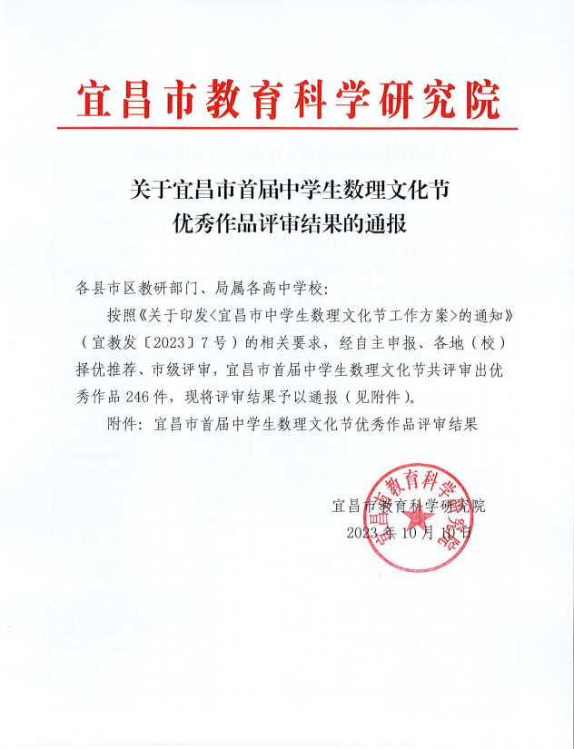 喜報(bào) | 宜昌市首屆中學(xué)生數(shù)理文化節(jié)歐校學(xué)子露鋒芒