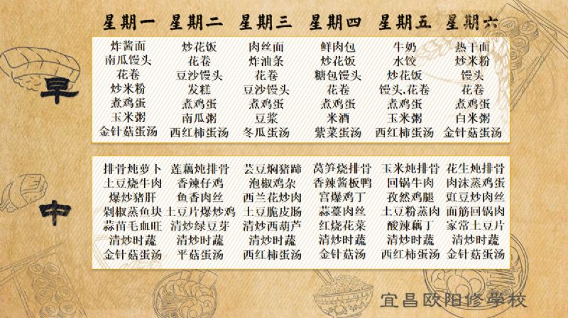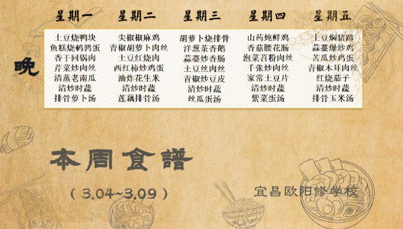 宜昌歐陽修學(xué)校每周食譜(3月4日至3月9日)