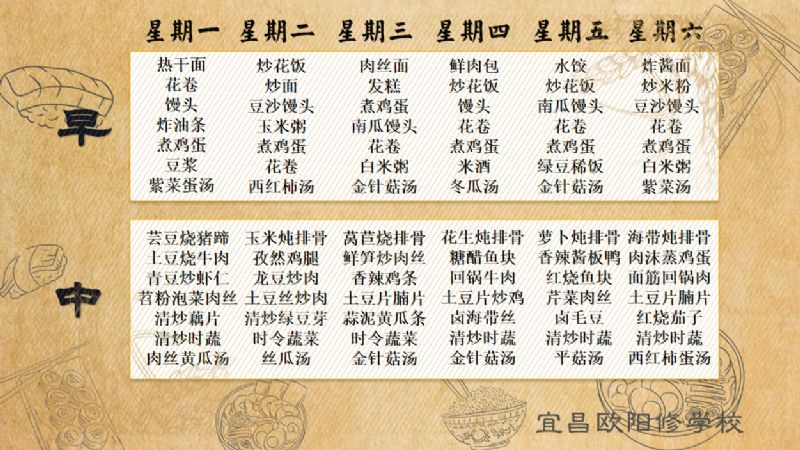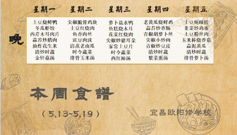 宜昌歐陽修學校每周食譜(5月13日至5月19日)