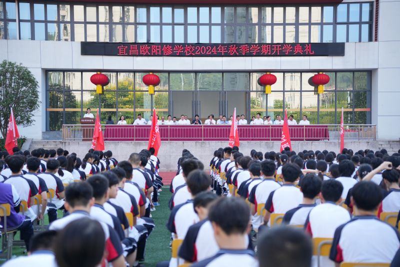 云天收夏色,木葉動(dòng)秋聲。9月1日上午,宜昌歐陽修學(xué)校2024級新生開學(xué)典禮暨優(yōu)秀學(xué)生表彰大會(huì)在操場隆重舉行。秋霜未起,柔光已至。清晨秩序井然的操場,迎來了朝氣蓬勃的2024級新生。恰同學(xué)少年,風(fēng)華正茂,莘莘學(xué)子,上下求索,為歐校注入嶄新活力。伴隨著雄壯的國歌聲五星紅旗冉冉升起,開學(xué)典禮正式拉開了序幕。