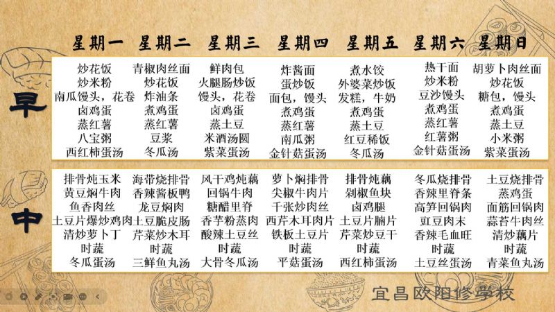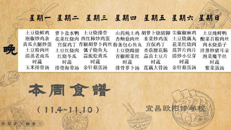 宜昌歐陽(yáng)修學(xué)校每周食譜(11月4日至11月10日)