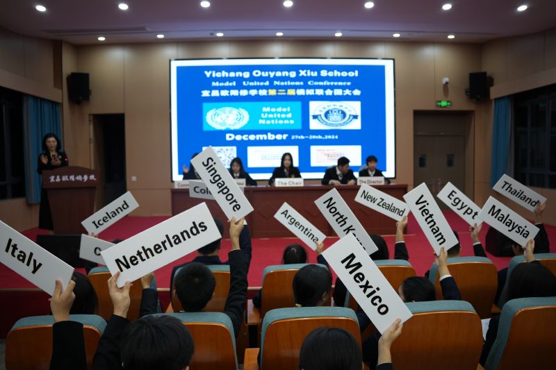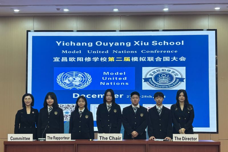 宜昌歐陽(yáng)修學(xué)校國(guó)際部第二屆MUN模擬聯(lián)合國(guó)大會(huì)于2024年12月26日晚上6:30-8:30在教學(xué)樓五樓大會(huì)議室舉行,國(guó)際部5位模聯(lián)主席團(tuán)成員以及來自高一年級(jí)的34位模擬聯(lián)合國(guó)代表將扮演各個(gè)國(guó)家的外交官,用全英文闡述FoodSafety世界食物安全問題,給全校師生展示英語(yǔ)學(xué)習(xí)的趣味性和重要意義。