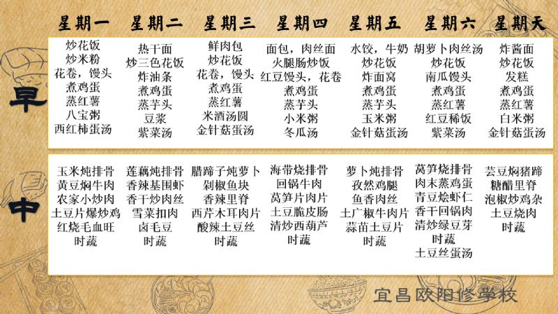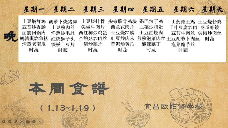 宜昌歐陽修學校每周食譜(1月13日至1月19日)