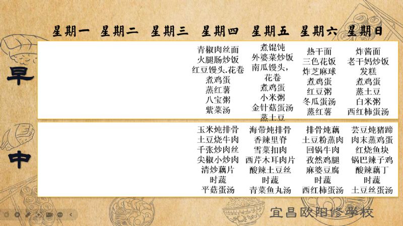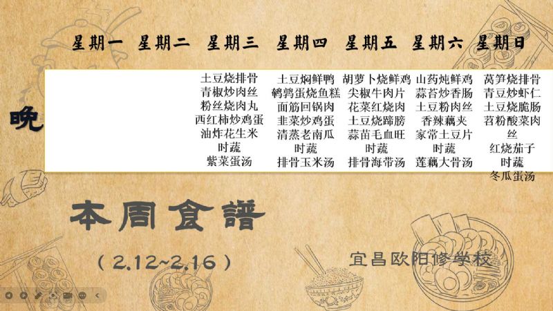 宜昌歐陽修學校每周食譜(2月12日至2月16日)
