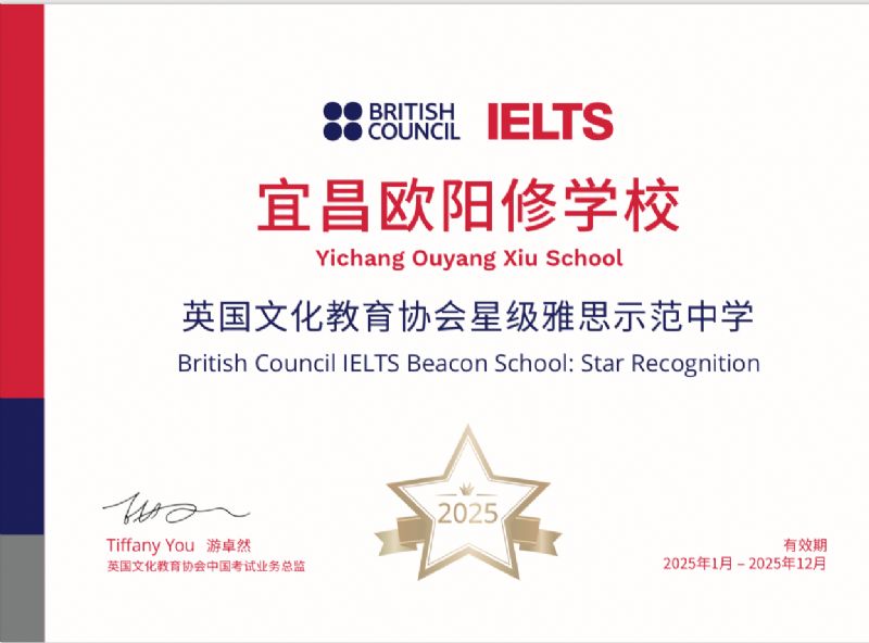 【宜昌歐陽修學校國際高中】榮膺2025年度"星級雅思示范中學"——湖北省僅3所,宜昌唯一