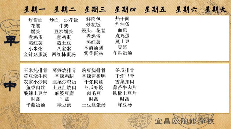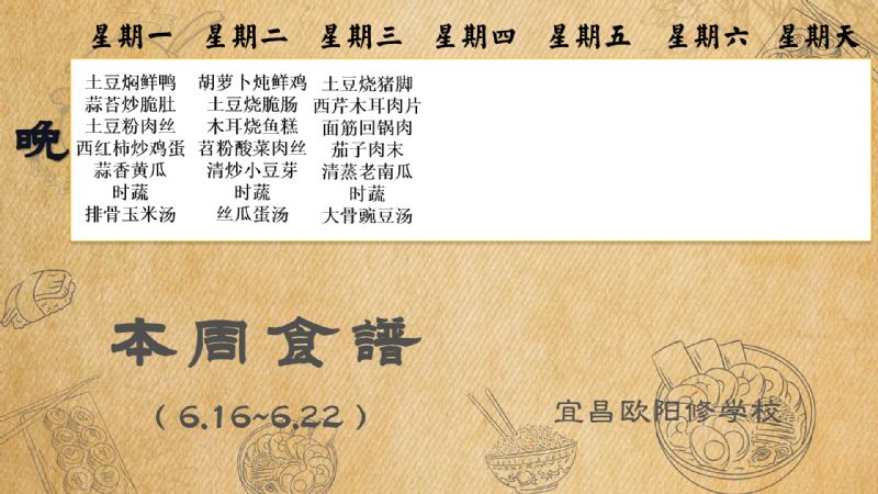 宜昌歐陽修學校每周食譜(6月16日至6月22日)