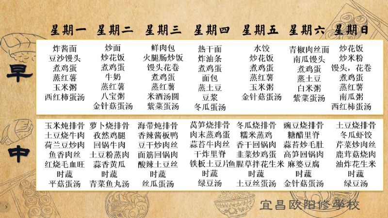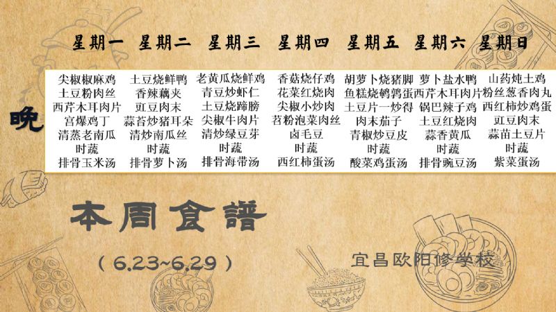 宜昌歐陽修學校每周食譜(6月23日至6月29日)