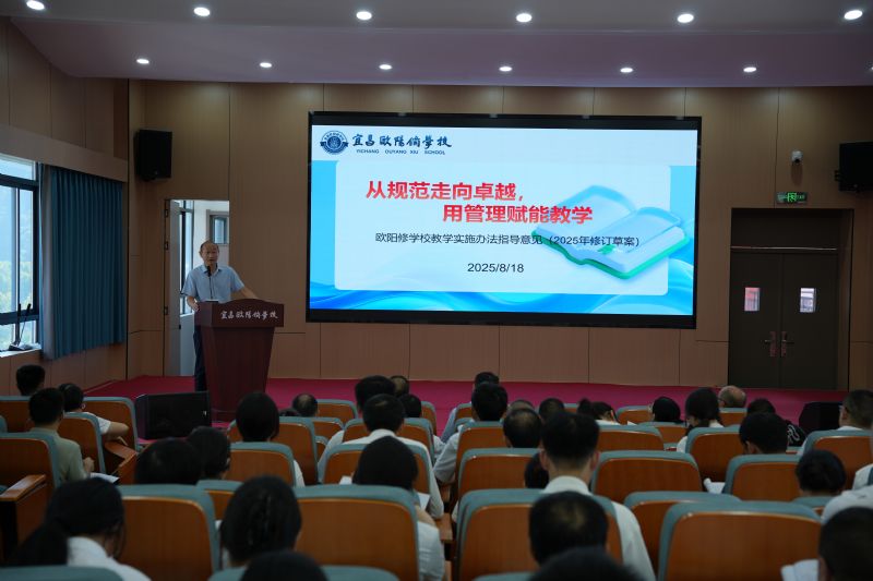 吳校長講解宜昌歐陽修學(xué)?!稓W陽修學(xué)校教學(xué)實(shí)施辦法指導(dǎo)意見(2025年修訂草案)》,圍繞“從規(guī)范走向卓越,用管理賦能教學(xué)”的核心目標(biāo),出臺(tái)系列教學(xué)管理新規(guī),涵蓋教學(xué)實(shí)施、過程考評及質(zhì)量獎(jiǎng)勵(lì)三大方面,為提升教學(xué)質(zhì)量奠定堅(jiān)實(shí)基礎(chǔ)。