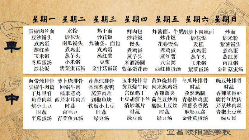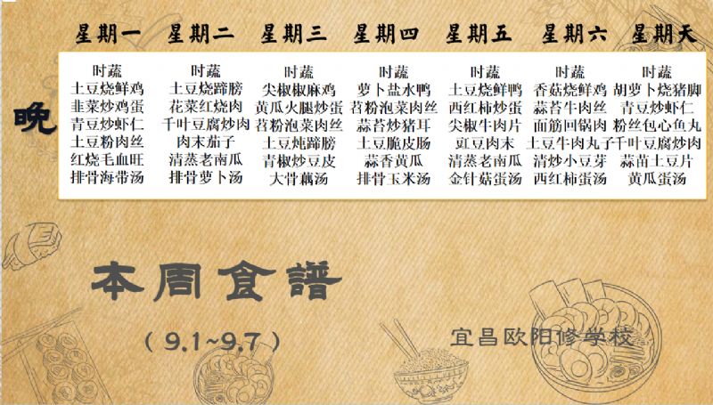 宜昌歐陽(yáng)修學(xué)校每周食譜(9月1日至9月7日)