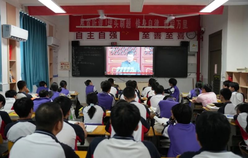2025年9月3日,宜昌歐陽修學(xué)校組織師生共同觀看抗戰(zhàn)勝利80周年閱兵盛典。習(xí)近平總書記發(fā)表慷慨激昂、振奮人心的重要講話,隆重紀(jì)念中國人民抗日戰(zhàn)爭暨世界反法西斯戰(zhàn)爭勝利80周年。銘記歷史、緬懷先烈、珍愛和平、開創(chuàng)未來。中華民族偉大復(fù)興勢不可擋!人類和平與發(fā)展的崇高事業(yè)必將勝利。當(dāng)共和國鋼鐵雄師的號聲響徹天際,當(dāng)現(xiàn)代化裝備方陣以排山倒海之勢駛過天安門廣場,當(dāng)戰(zhàn)機(jī)梯隊(duì)呼嘯著劃破長空,整個校園沸騰著自豪與感動。師生們凝神屏息,眼中閃爍著激動的淚光,在這場氣勢恢宏的國家盛典中真切感受到了強(qiáng)國強(qiáng)軍的時代強(qiáng)音。