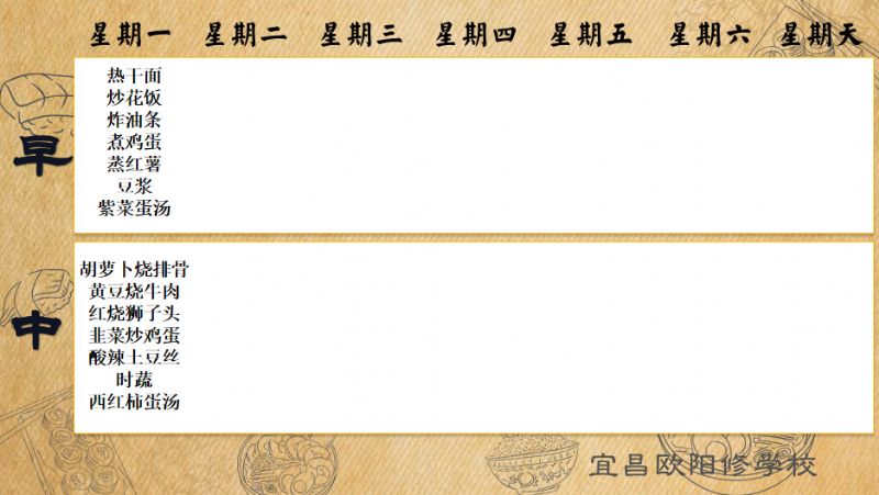宜昌歐陽(yáng)修學(xué)校每周食譜(9月29日-10月6日)