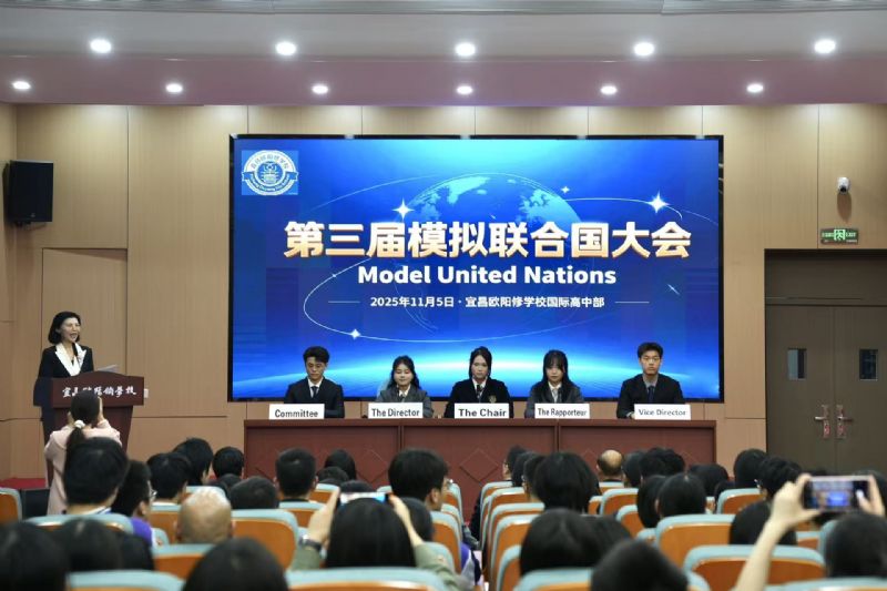 該校作為宜昌市唯一的雅思示范中學(xué),始終以"學(xué)生自主發(fā)展"為核心,通過模聯(lián)這類高品質(zhì)國際活動(dòng),拓寬學(xué)生國際視野,鍛煉批判性思維與跨文化交際能力。正如"滯者導(dǎo)之使達(dá),蒙者開之使明"的教育理念,模聯(lián)大會(huì)為學(xué)子們搭建了知行合一的實(shí)踐平臺(tái),讓他們?cè)诮巧缪葜刑嵘I(lǐng)導(dǎo)力,在觀點(diǎn)碰撞中啟迪智慧。