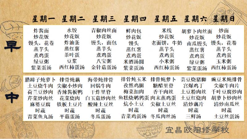 宜昌歐陽修學(xué)校每周食譜(12月1日-12月7日)